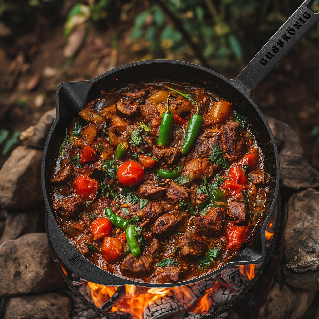 Erlebe mit unserem Dutch Oven die pure Freude und Faszination des Outdoor-Kochens.Egal ob du am Lagerfeuer, beim Camping oder im eigenen Garten, dieser robuste und langlebige Kochtopf wird Dein treuerBegleiter sein.Er eignet sich perfekt für herzhafte Gerichte wie Chili Con Carne, aber Du kannst ihn auch vielseitig für andere Rezeptenutzen.Einfach Gemüse, Gewürze und Fleisch in den Topf legen, Deckel schließen und sanft über der Glut köcheln lassen. Du wirstbeobachten, wie sich die Aromen in der Luft verbreiten und eine unvergleichliche Duftkulisse entstehen lassen. Mit unseremDutch Oven wird jede Mahlzeit zu einem unvergesslichen Highlight. Jeder Bissen wird zu einer Geschmacksexplosion, dieDeine Gäste begeistern wird. Es ist nicht nur eine Mahlzeit, es ist ein authentisches Kocherlebnis, das du immer wieder mitDeinen Freunden und Deiner Familie teilen möchtest. Unser Dutch Oven bringt Abenteuer und Genuss zusammen undverwandelt jede Outdoor-Veranstaltung in eine Gourmet-Expedition.