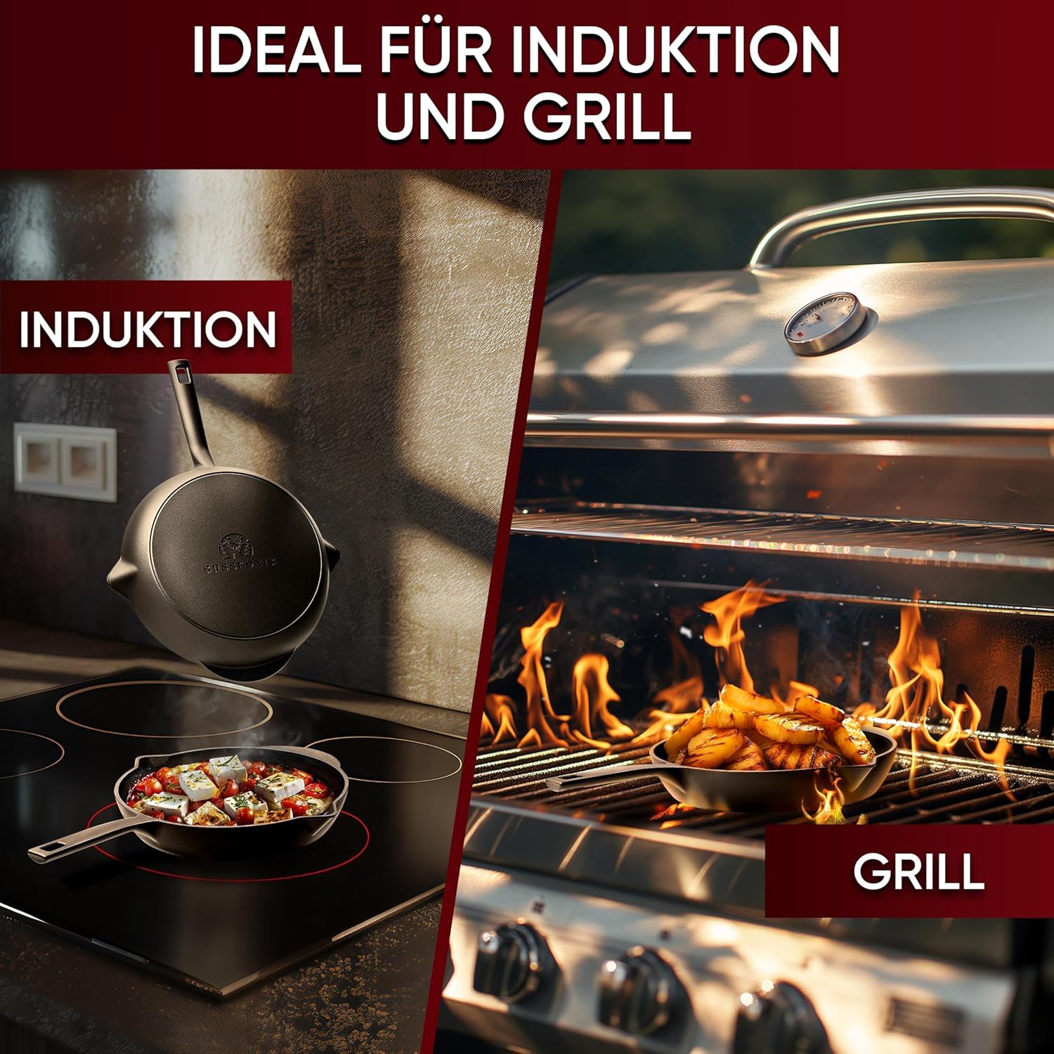 • PERFEKTES GESCHENK FÜR GRILLMEISTER: Unser Gusseisenpfanne Grill Set überzeugt durch seine Vielseitigkeit - Ideal für das Grillen kleiner Delikatessen und das Warmhalten von Beilagen oder Saucen. Praktisch und stilvoll zugleich!