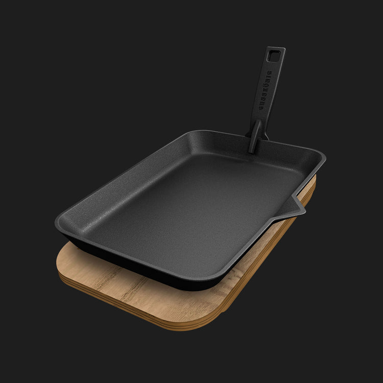 ABNEHMBARER GRIFF: Der Griff lässt sich mühelos an jeder Stelle der Pfanne anbringen, sodass DU die Pfanne sicher und bequem anheben kannst. Das mitgelieferte Servierbrett aus Akazienholz sorgt für ein optimales Serviererlebnis!