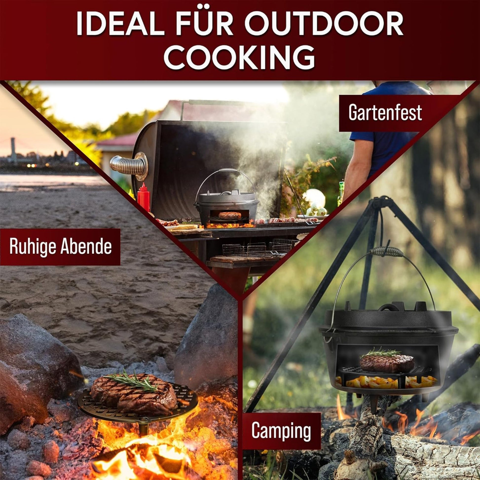 Der Dutch Oven funktioniert auf Grill, Gasherd, Feuerstelle oder im Backofen. Er eignet sich für Schmorgerichte, Brot, Aufläufe und Desserts, drinnen wie draußen.