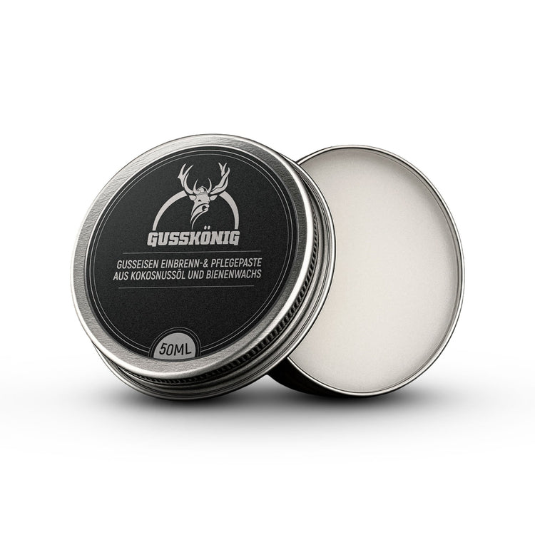 Nur hier im offiziellen GUSSKÖNIG Shop erhältst du zusätzlich ein Pflegeset mit Pflegepaste und Edelstahl-Ringreiniger. Damit bleibt dein Dutch Oven sauber und geschützt.